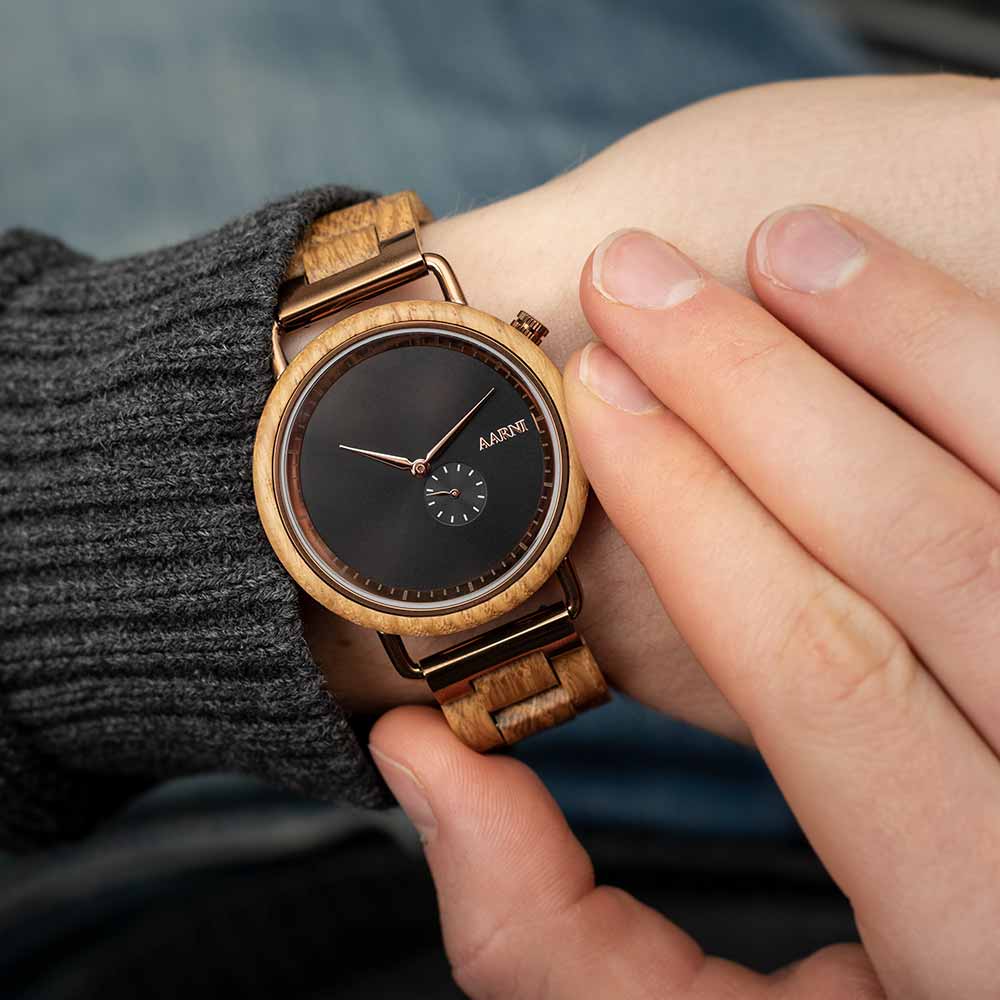 Aarni Wood Watches are built around the elements of nature. Elegant Scandinavian design, unique materials and top-quality movements create a charming impression. Our wooden watches offer not only stylish looks but also exceptional comfort. They don’t make your wrist sweat and are lightweight to wear. When it comes to a watch structure and durability, all Aarni Wooden Watches conceal a stainless-steel case protecting the movement.