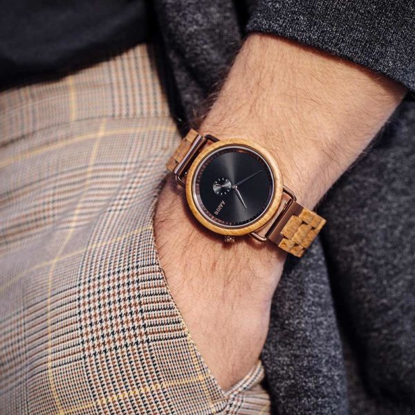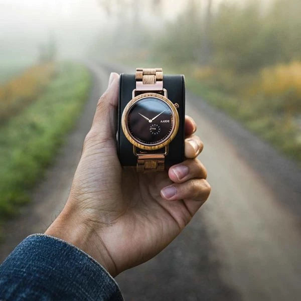 The Aarni Sirius Wooden Oak Watch is delivered in an elegant watch case.